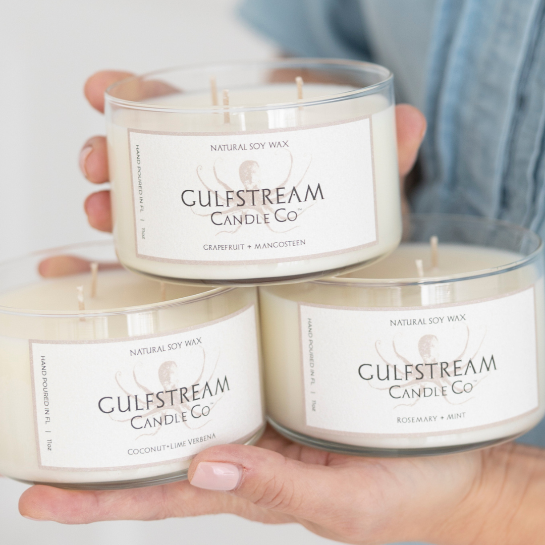 All Gulfstream candles are made with 100% U.S. grown soybeans, natural wicks, dye free, and US sourced natural oils.